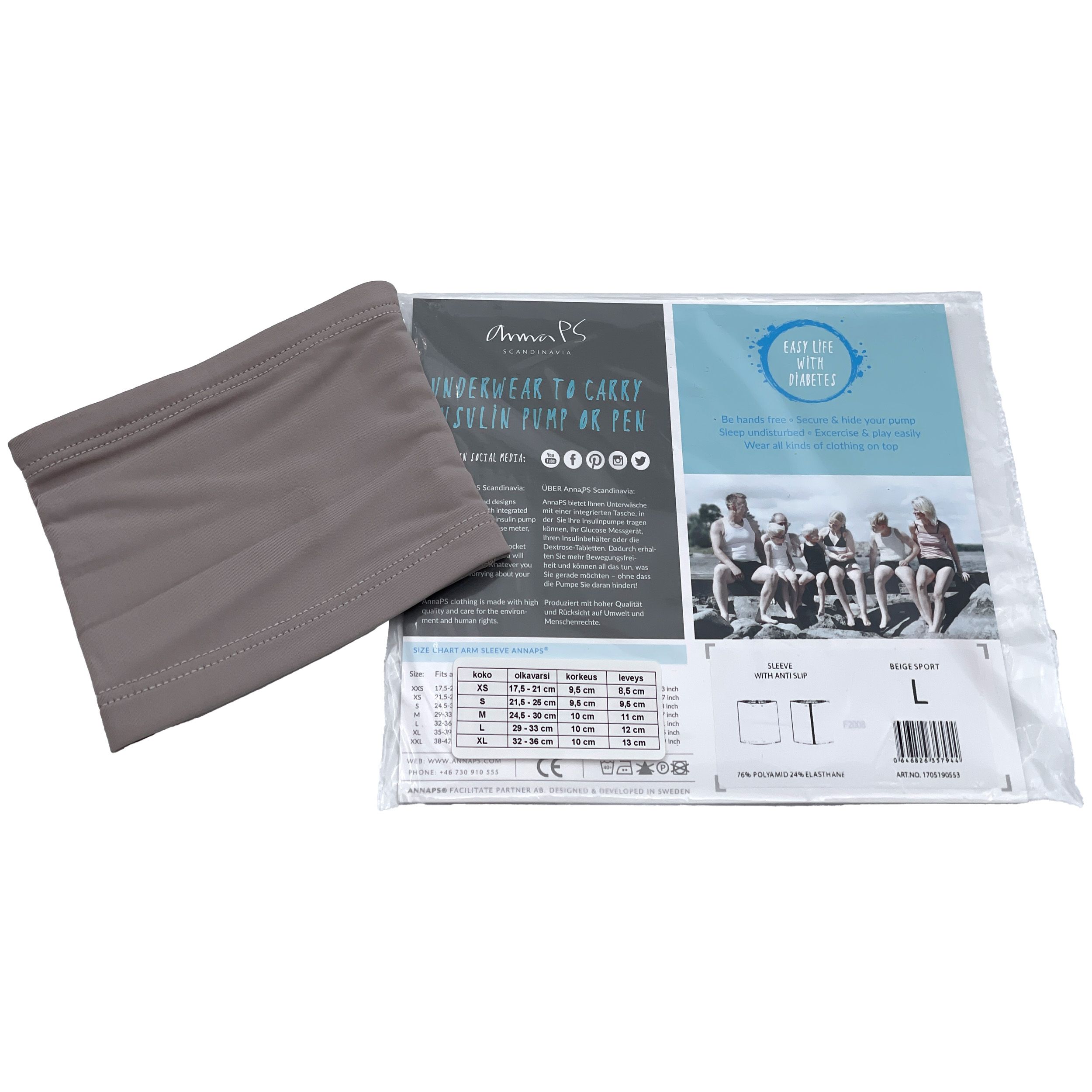 AnnaPS:n taskuton käsivarsivyö on tarkoitettu sensorin tai insuliinipumpun suojaamiseen. Unisex-mallia on saatavilla useassa eri koossa ja kolmessa eri värissä. Kankaan sisälle on ommeltu kuminauha, joten vyön liukumista paikoiltaan tai putoamista on turha pelätä. Unisex-malli sopii niin naisille kuin miehille. Saatavilla kaksi eri väriä ja seitsemän eri kokoa.