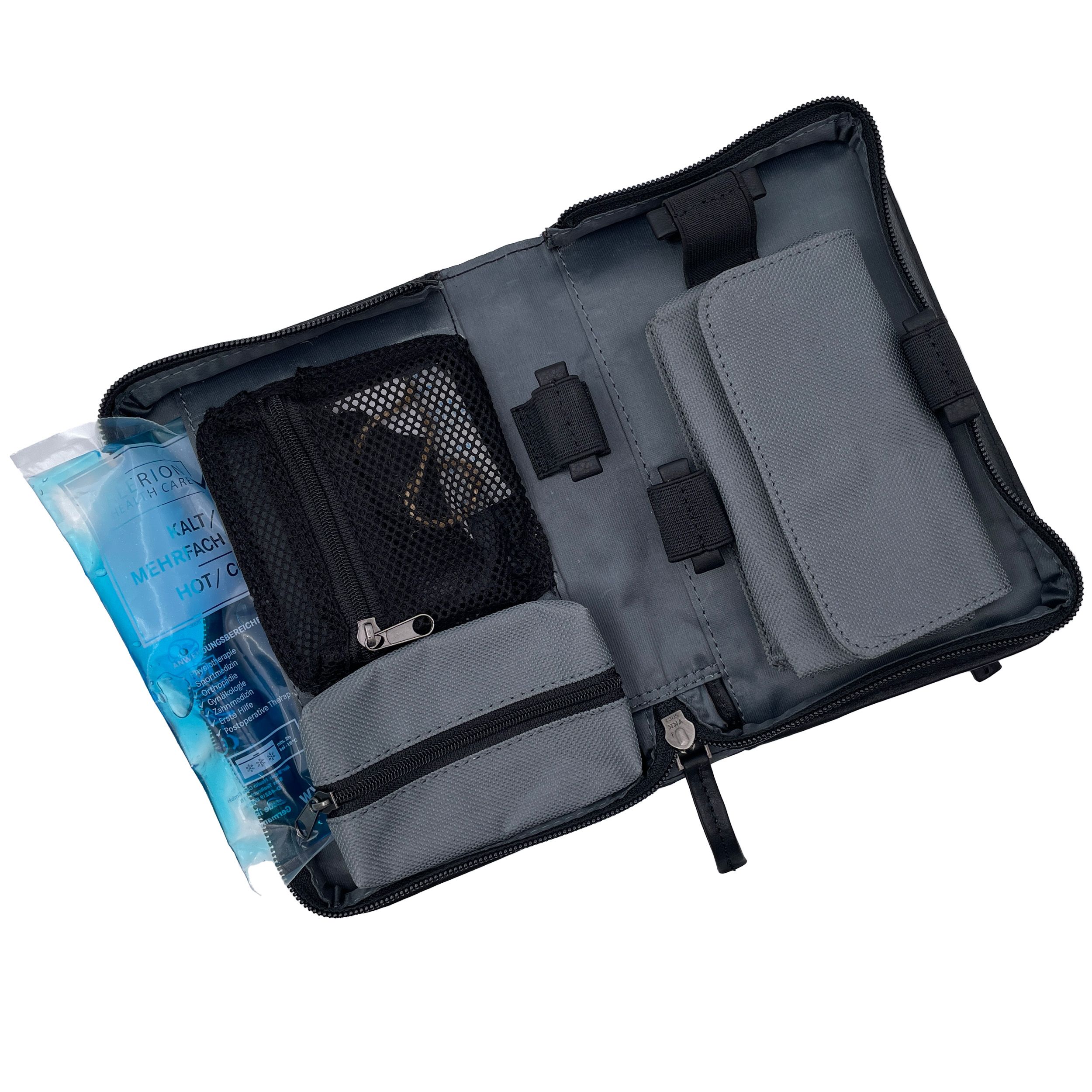 Laukussa on tilaa diabeetikon päivittäisille tarvikkeille ja sivutasku henkilökohtaisille tavaroille, kuten avaimille. Tilaa löytyy esimerkiksi kahdelle insuliinikynälle, verensokerimittarille tai lukijalle (Freestyle Libre, Dexcom, Omnipod), mittaliuskapurkille, pistolaitteelle sekä lanseteille.