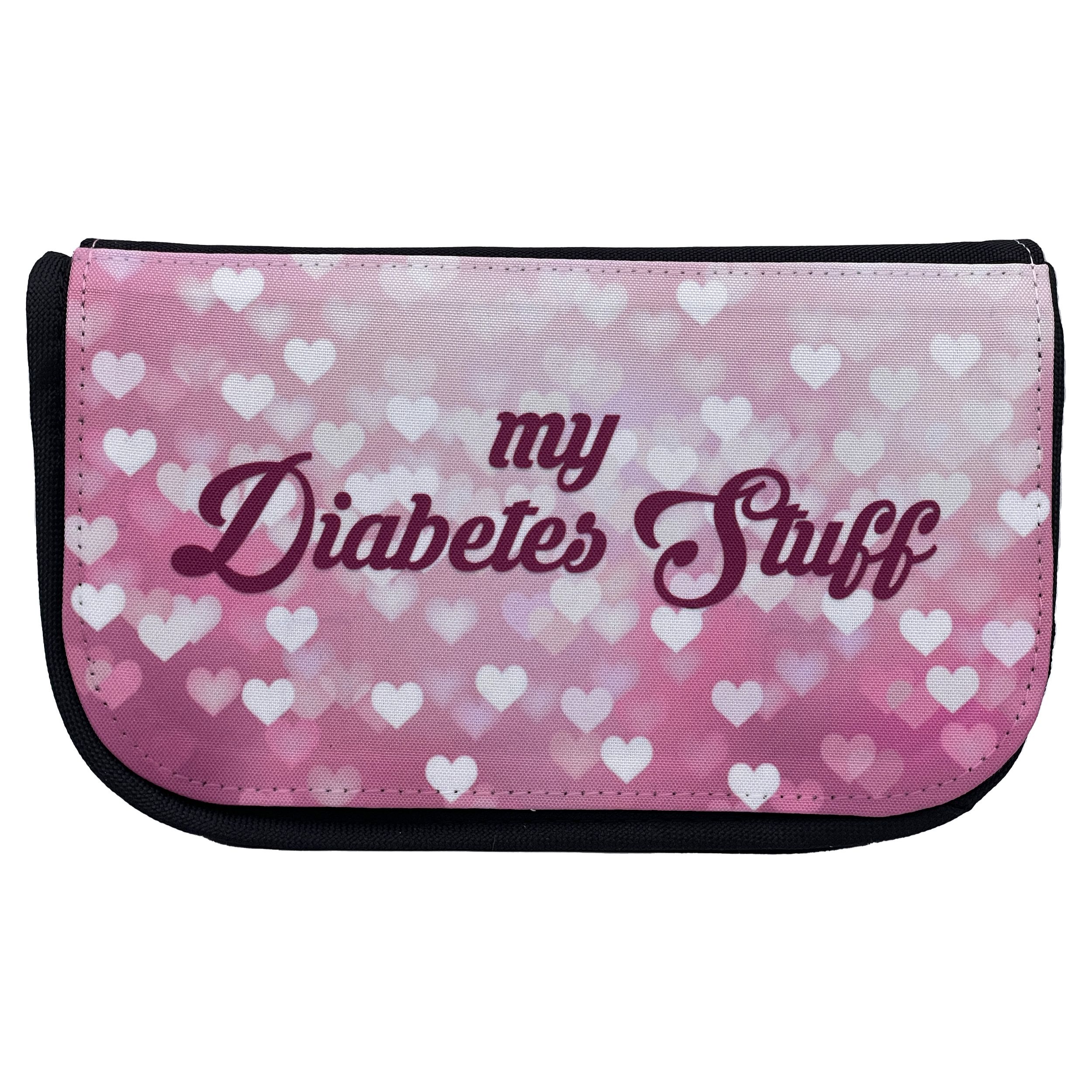 Diabeetikon tarvikelaukku on ihanteellinen mm. koululaisen ja treenaajan tarpeisiin. Sydän-kuosi tuo päivään vaaleanpunaista herkkyyttä!