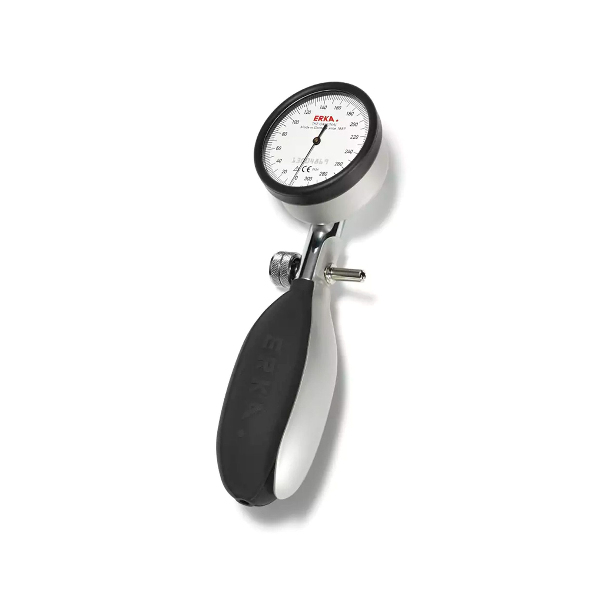 ERKA Kobold on alumiinikuorella päällystetty kevyt ja kestävä mittari, joka istuu kätevästi käteen. Mittarin ja mansetin letkut yhdistyvät toisiinsa vaivattomasti värikoodattujen pikaliitinten avulla. Suojarengas suojaa näyttöä kolhuilta.