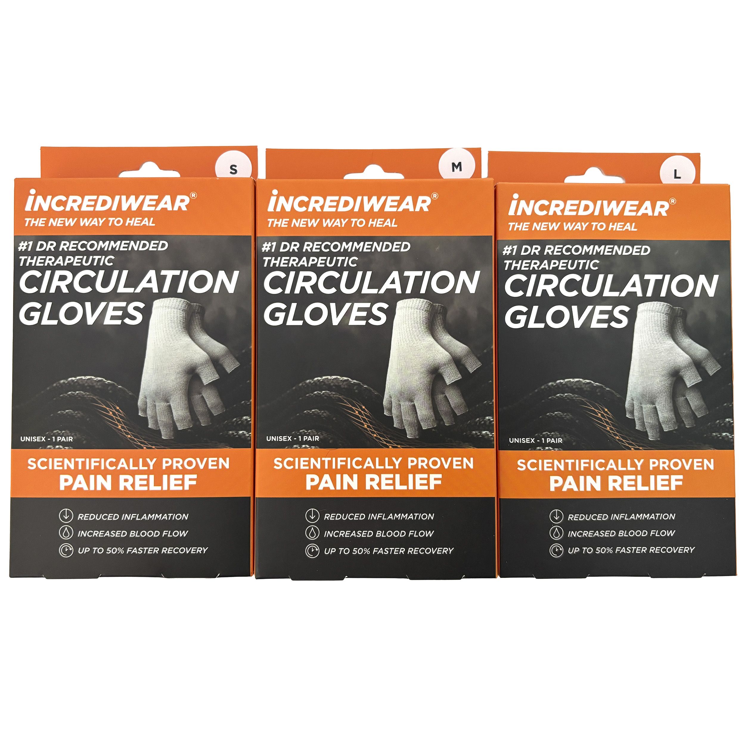 Incrediwear Circulation Gloves eli terapeuttiset kynsikkäät on kehitetty lisäämään verenkiertoa, vähentämään turvotusta ja tulehdusta sekä lievittämään kipua. Ne pyrkivät myös parantamaan käden ja ranteen liikkuvuutta.