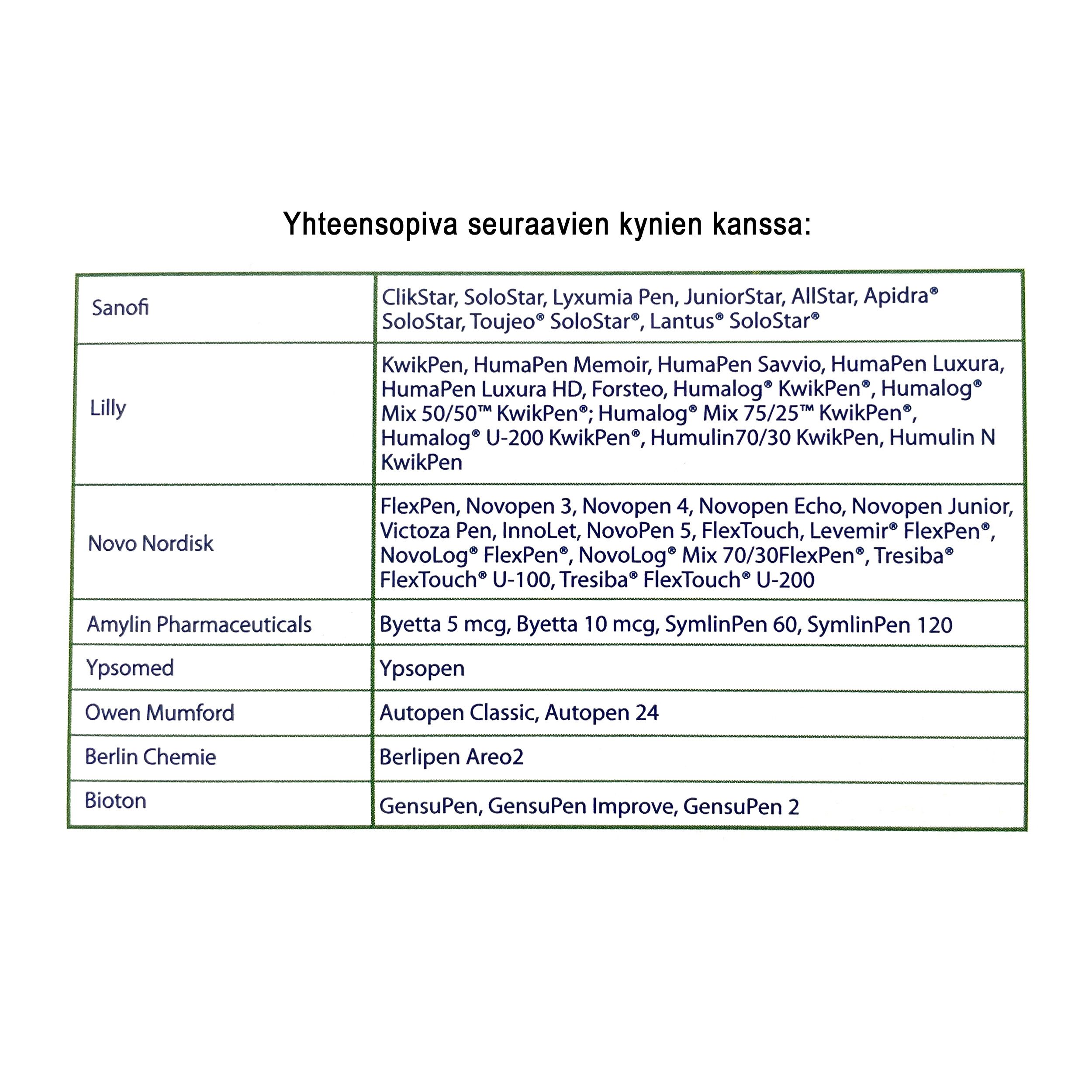 - Tuotepolku Etusivu DIABETESTUOTTEETTarvikkeet insuliinin käyttäjilleKynäneulat ja ruiskut Insupen kynäneula Original 100 kpl 4 mm