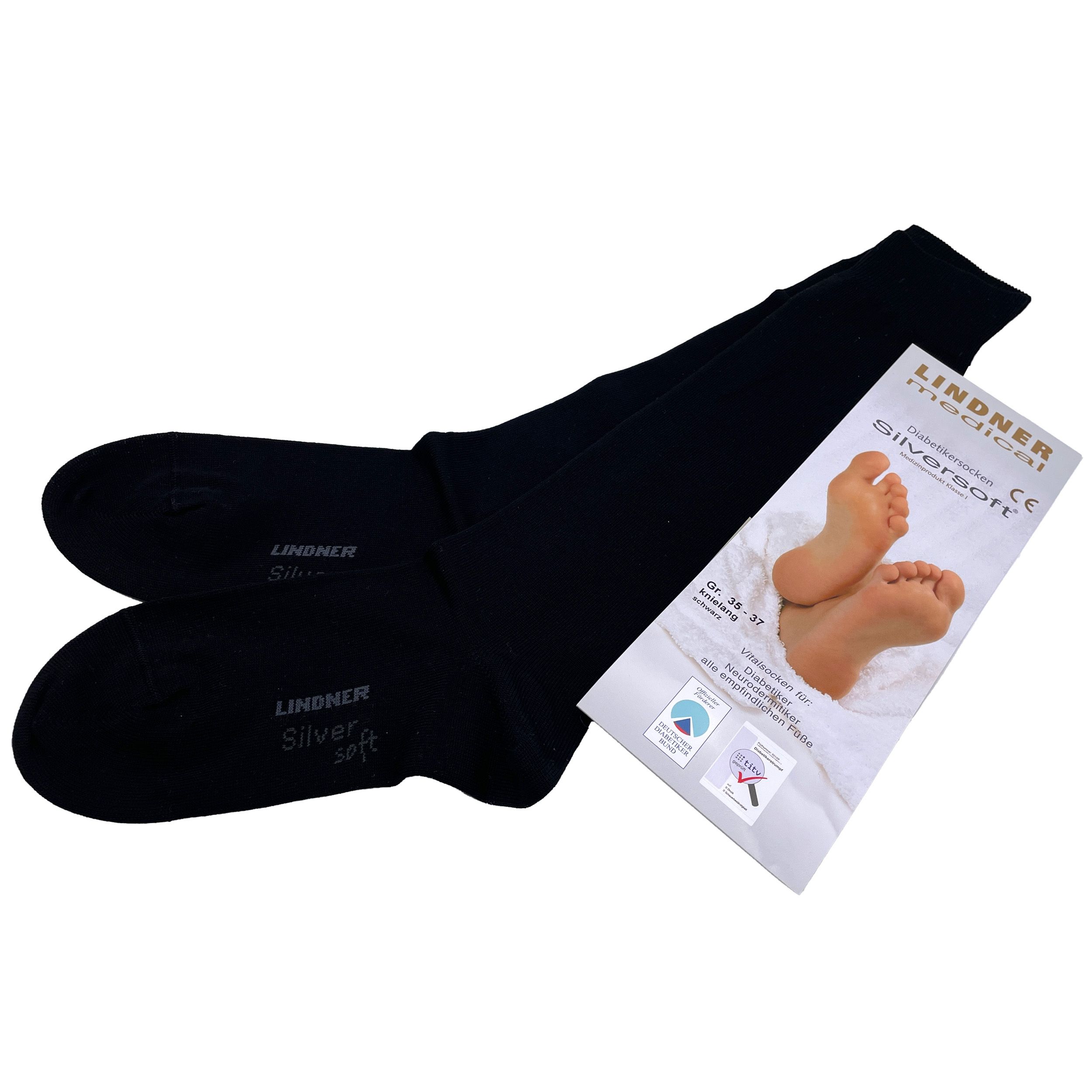 - Tuotepolku Etusivu DIABETESTUOTTEETDiabeetikon jalkojen hoitoDiabetessukat Lindner Silversoft polvisukka Koko 44-46