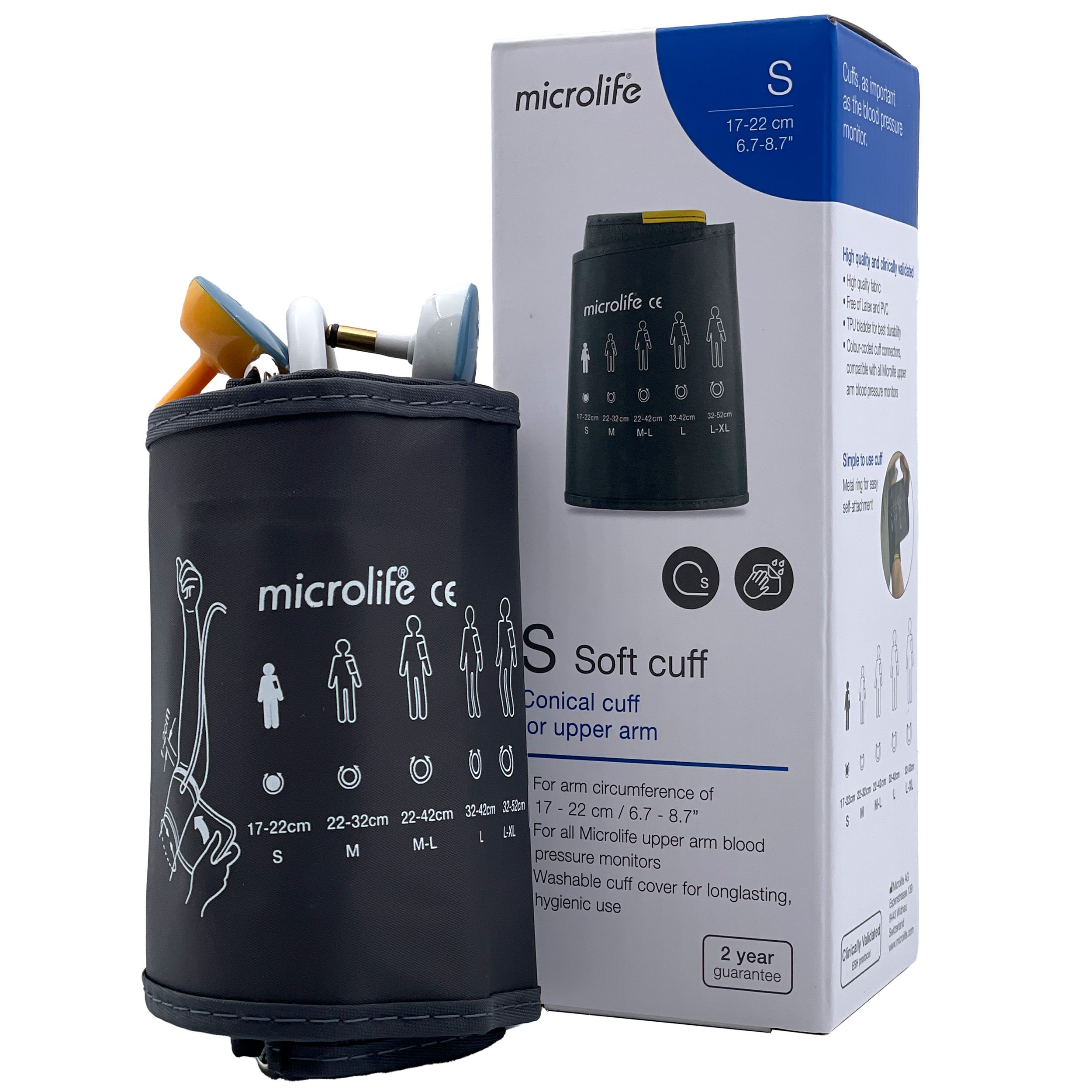 - S-mansetti, pehmeä (olkavarren ympärys 17 - 22 cm). Mukana sininen liitin ja L-liitin.