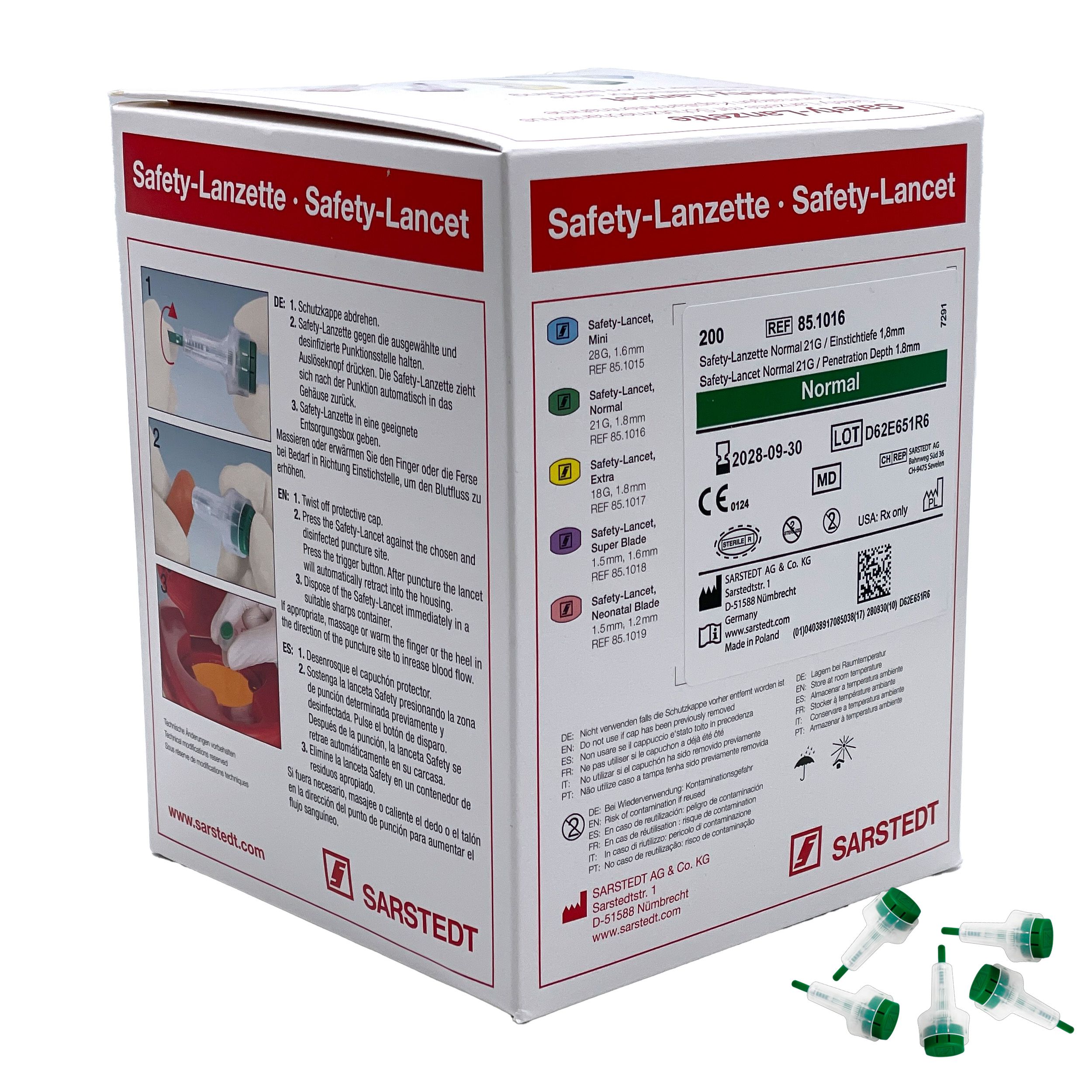 - Tuotepolku Etusivu DIABETESTUOTTEETVerensokerin mittaaminenVerensokerimittauksen lansetit Sarstedt turvalansetti (Normaali, vihreä, 21G, 1,8mm)