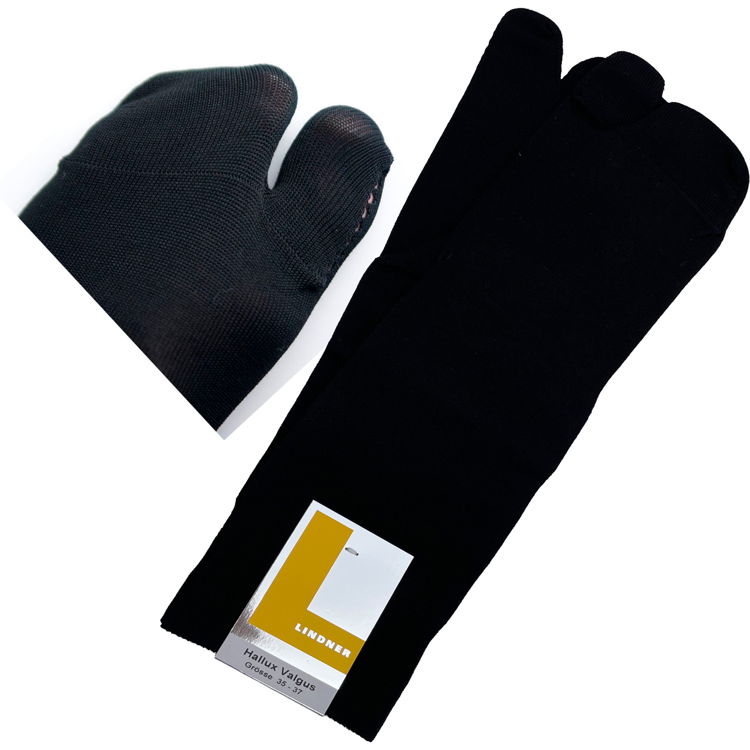 Saksalaisen, arvostetun laatumerkki LINDNERin valmistamat hallux valgus -sukat ovat täydellinen lisäapu, kun vaivaisenluuta hoidetaan esimerkiksi lastalla. Sukat ovat anatomisesti muotoillut ja paineettomat. Sukan välikerros vähentää kitkaa, tekee hoidosta hellävaraisempaa ja helpottaa askellusta. Sukkien laadukas materiaali on erityisen hellävaraista iholle.