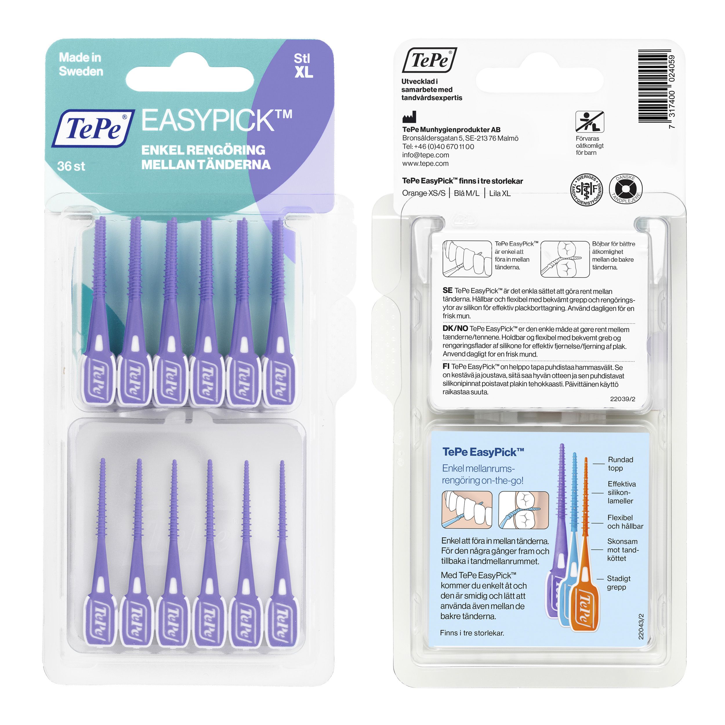 - Tuotepolku Etusivu HYVINVOINTISuuhygieniahammastikut TePe EasyPick Hammastikku Koko XL Violetti 36 kpl
