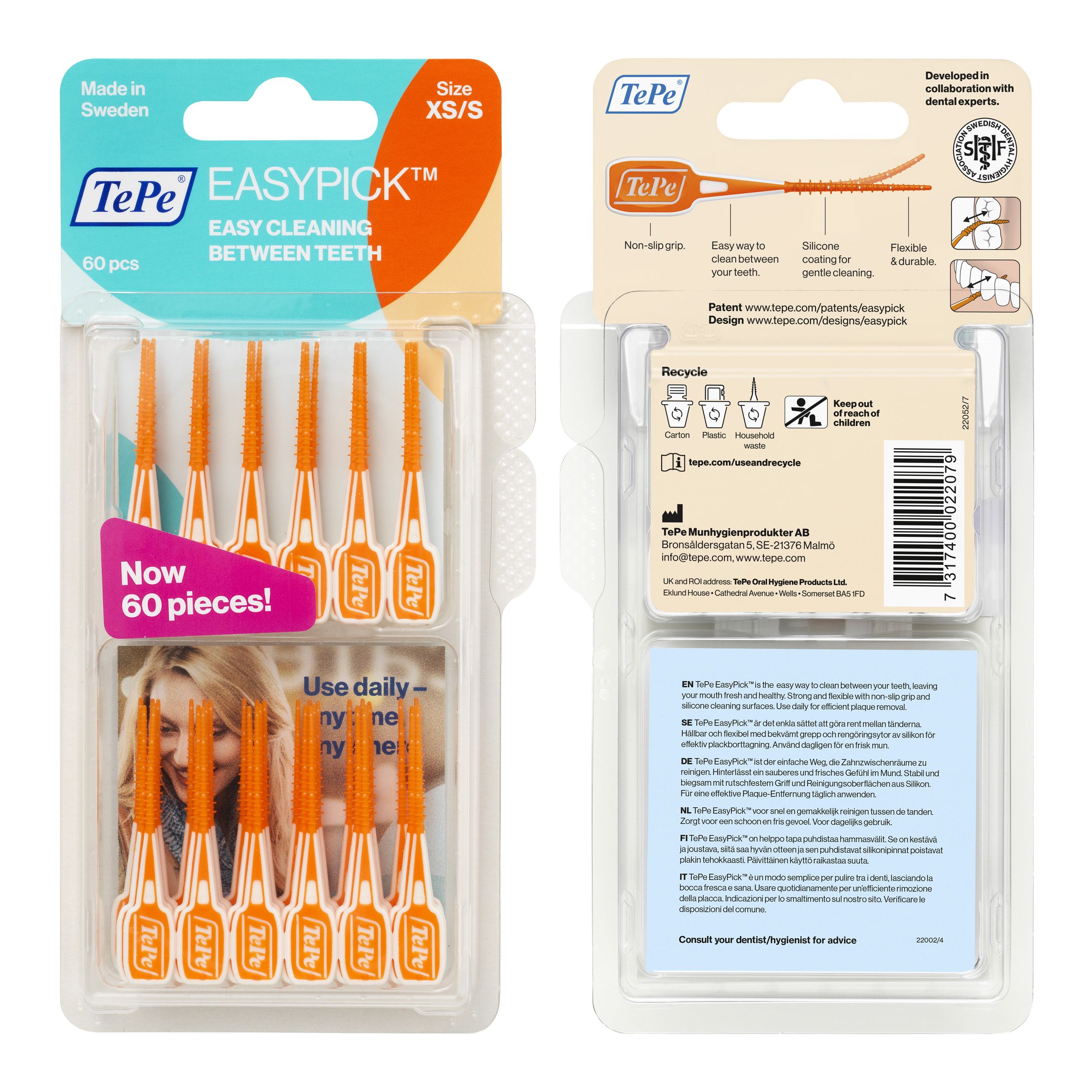 - Tuotepolku Etusivu HYVINVOINTISuuhygieniahammastikut TePe EasyPick Hammastikku Koko XS/S Oranssi 60 kpl