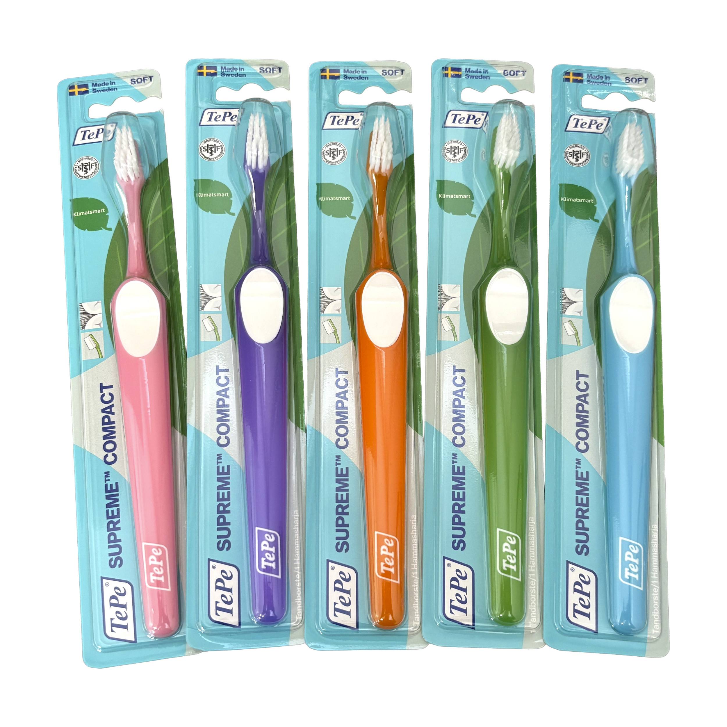 - Tuotepolku Etusivu HYVINVOINTISuuhygieniahammasharjat TePe Supreme Compact Soft hammasharja