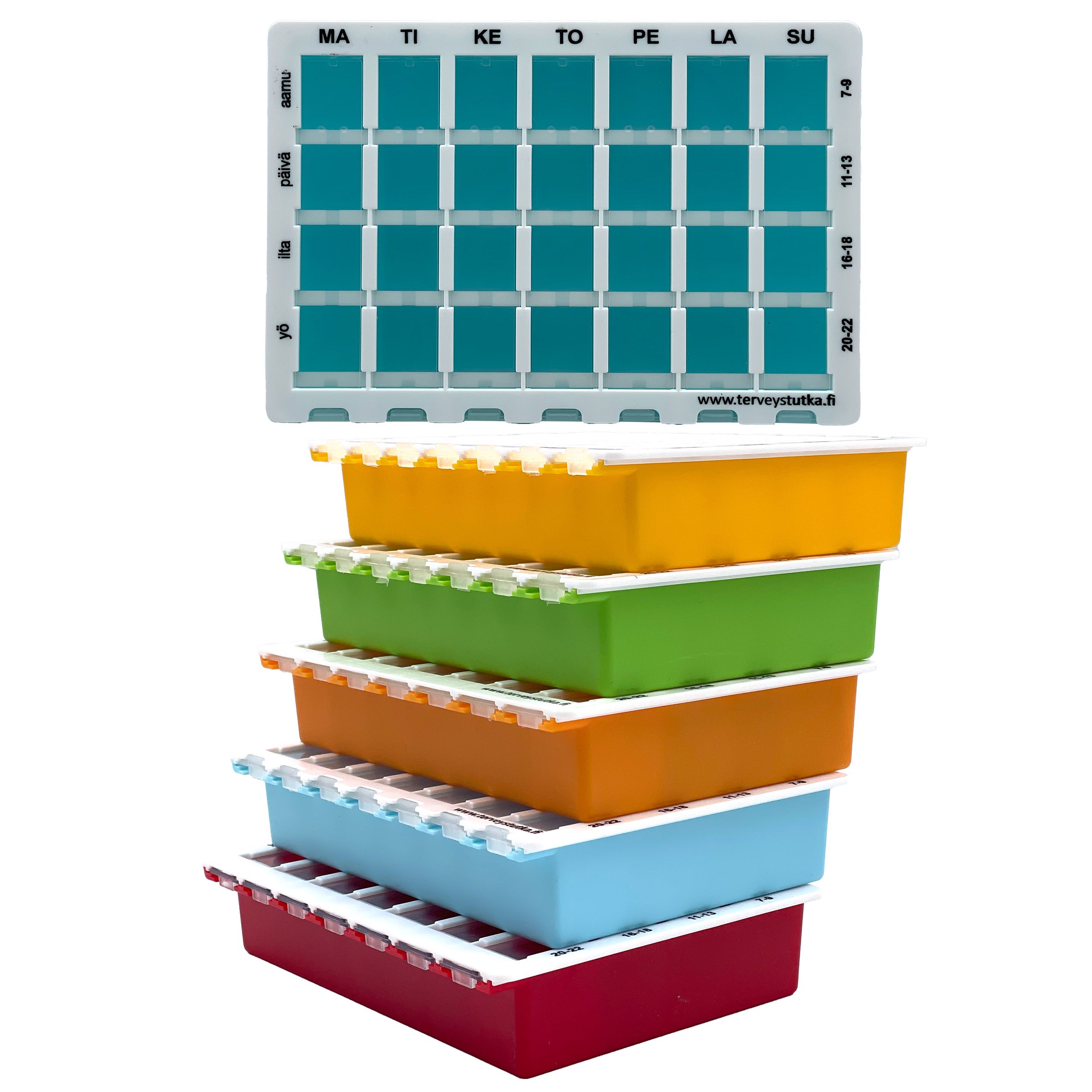 vihreä ja oranssi. Lääkeannostelija sopii lääkkeiden, vitamiinien ja