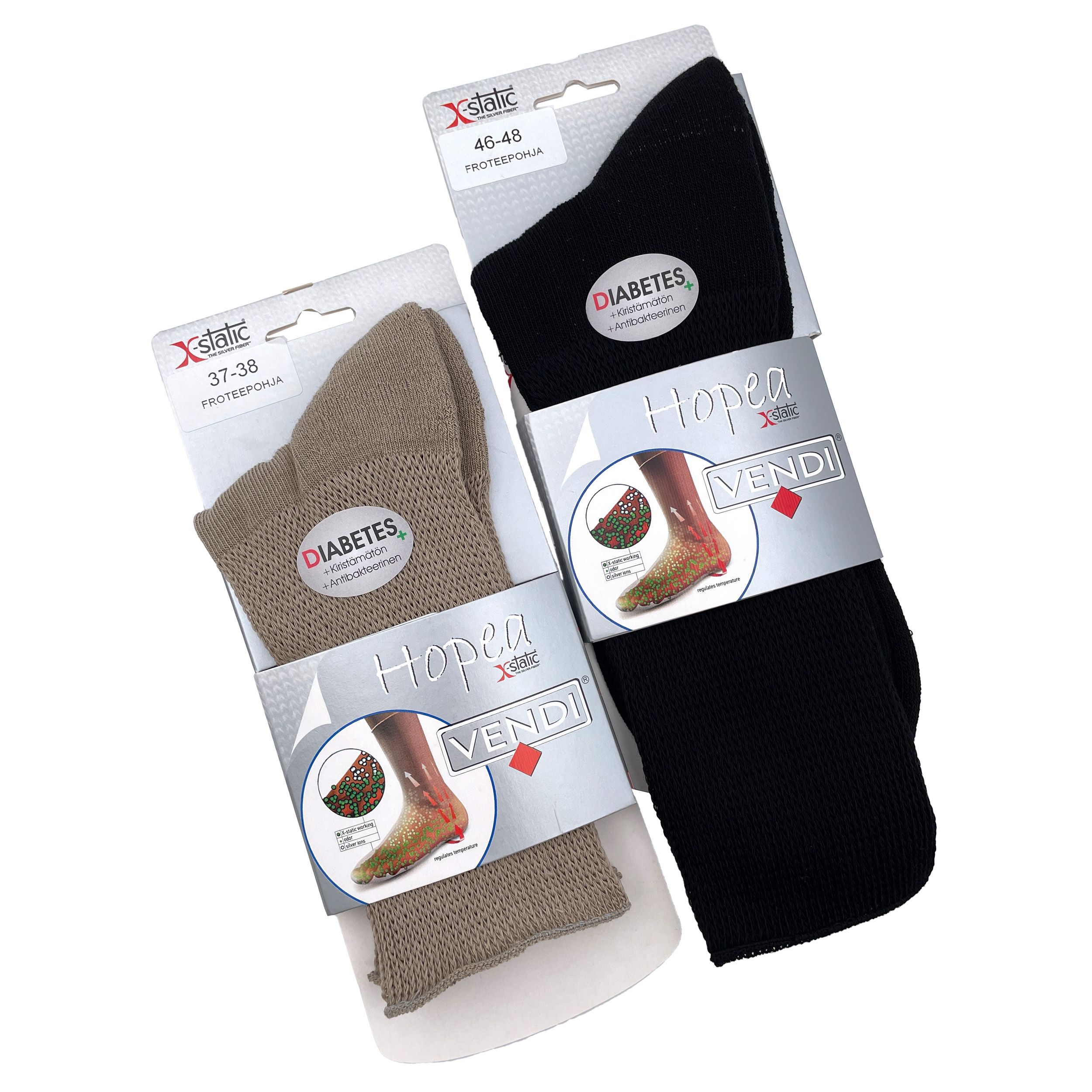 X-Static hopeakuitusukka froteepohjalla on luonnollinen, toimiva ratkaisu jalkojesi hyvinvointiin.Froteepohja on miellyttävä ja suojaa jalkoja hankaumilta. Hopealanka säätelee lämpöä ja hillitsee bakteerikasvua. Se on täysin luonnollinen, myrkytön, kesällä viileä ja talvella lämmin. Hopeakuitusukka neutralisoi hajuja ja poistaa sähköisyyden aiheuttaman epämiellyttävän tunteen jaloista.